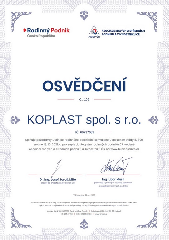 Auch die Firma KOPLAST spol. s ro erfüllt die Definition eines Familienunternehmens.